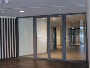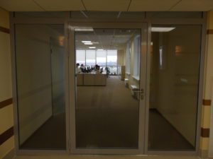 Как и другие огнестойкие входные конструкции, двери для офисных зданий изготавливаются из холоднокатаного стального листа. Полотно двери обычно состоит из двух металлических листов, сваренных между собой и одновременно закрепленных на ребре жесткости и каркасе из металлического профиля.